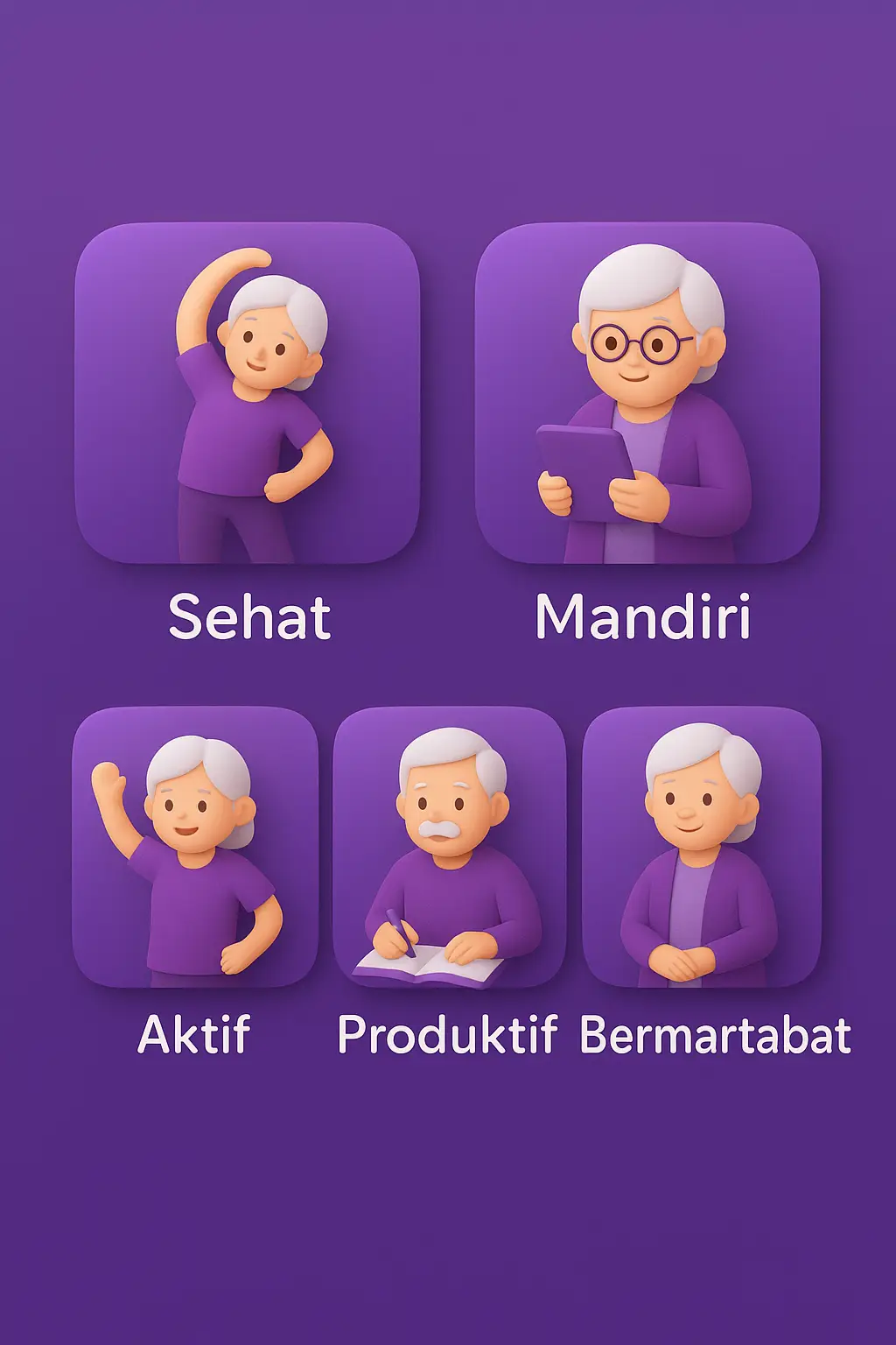 Mandiri → Lansia mampu melakukan aktivitas sehari-hari tanpa ketergantungan penuh pada orang lain.